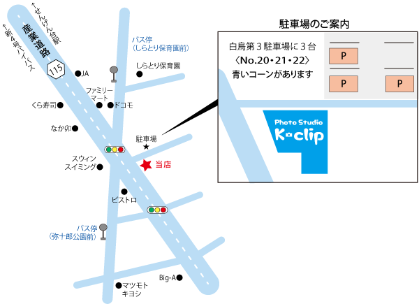 大人数でご来店の場合も、駐車スペースは3台までになります。